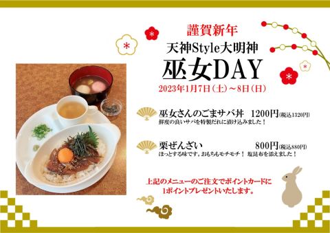 新年一発目のイベントです!! 今週末(1/7.8)の天神Styleは…❣️ ✨⛩️巫女DAY⛩️✨ イベント期間中、巫女服でお給仕いたします❤️ 新年は天神Style大明神へ初詣✨ ご主人様、お嬢様のご参拝をお待ちしております! https://t.co/OTUyAIYT2V
