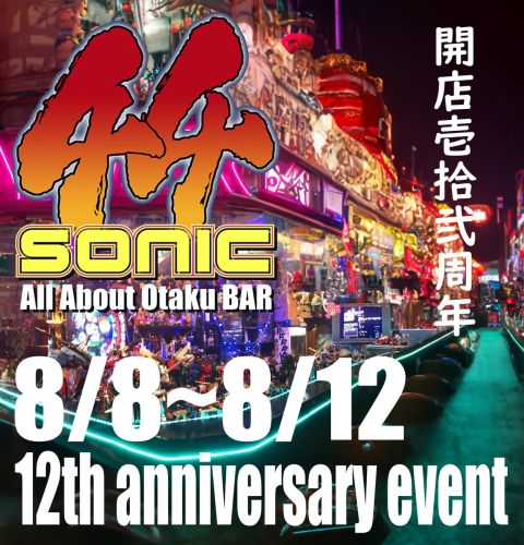 本日も阿䜐ヶ谷44sonicは20時オヌプン 12呚幎ありがずうございたす コミケ垰りにも是非お立ち寄りくださいね 初めおの方も久々の方も宜しくお願いいたしたす #アニ゜ンバヌ #阿䜐ヶ谷 #オタクバヌ https://t.co/PwASpPPNba