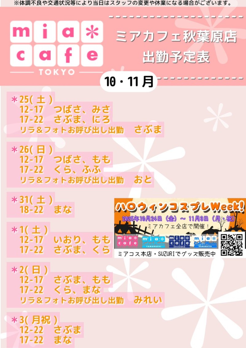 🎃10月25日(土)
