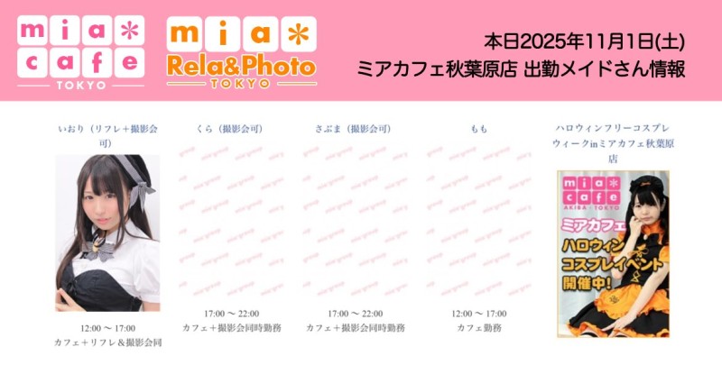 👑本日11月1日(土)のミアカフェ秋葉原店