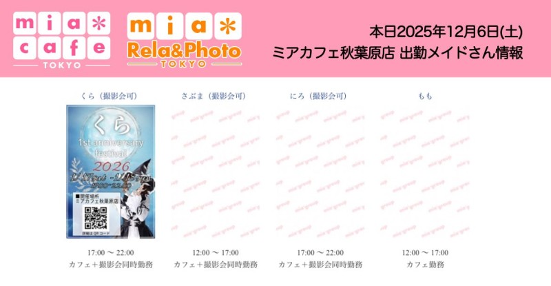 👑本日12月6日(土)のミアカフェ秋葉原店