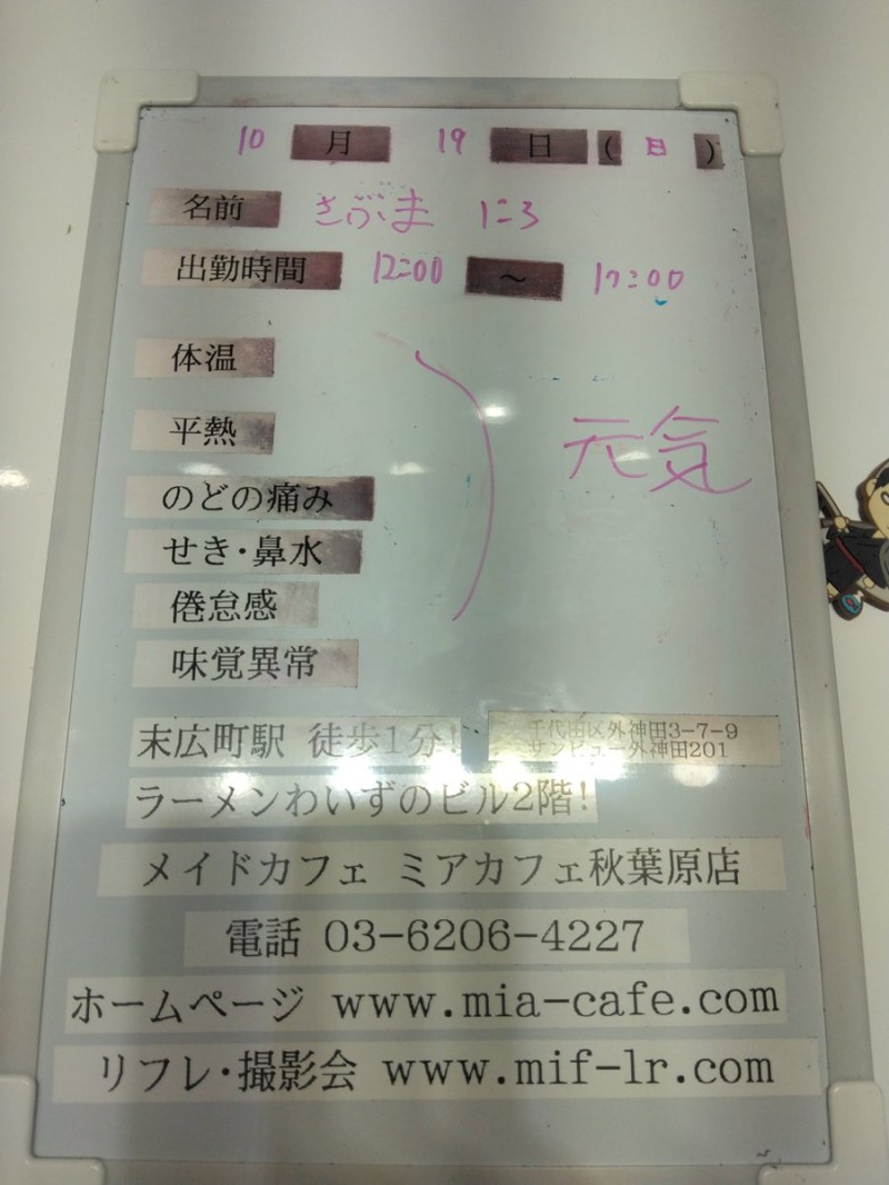 | å¶æ¥æé | âãã¢ã«ãã§æ±äº¬åºïŒã¡ã€ãã«ãã§ïŒhttp://www.mia-cafe.com/ãâ â¡å¹³æ¥ãæïœéãïŒïŒïŒïŒïŒïœïŒïŒïŒïŒïŒ â¡åæã»æ¥æã»ç¥æ¥ãïŒïŒïŒïŒïŒïœïŒïŒïŒïŒïŒ â å®äŒæ¥ããªãïŒ2019幎1æããå®äŒæ¥å»æ¢ïŒ â¡ã©ã¹ããªãŒããŒãéåºã®ïŒïŒåå ãïŒïŒïŒïŒïŒéåºã®å ŽåâïŒïŒïŒïŒïŒã©ã¹ããªãŒããŒ å¶æ¥æ¥ãåºå€ç¶æ³ã«ã€ããŠã¯ãã¡ãã http://pandaland.cutegirl.jp/mif/c_cms_csv/sch_top.php âãã¢ãªã©ïŒãã©ãæ±äº¬åºïŒæ®åœ±äŒïŒãªãã¬ïŒhttp://www.mif-lr.com/ãâ â¡å šæ¥ãïŒïŒïŒïŒïŒãïŒïŒïŒïŒïŒãã§ãããªã©ã¯ãŒãŒã·ã§ã³åºå€ã¹ã¿ãããããæé垯ã®ã¿å¶æ¥ã§ãã â å®äŒæ¥ã¯äžå®äŒïŒåºå€ã¹ã¿ãããããæé垯ã®å¶æ¥ïŒ â¡æçµåä»ãéåºã®ïŒïŒåå ãïŒïŒïŒïŒïŒéåºã®å ŽåâïŒïŒïŒïŒïŒïŒïŒïŒïŒïŒïŒè¿ã«æœè¡æéãçµããã³ãŒã¹ïŒ â»é«æ ¡çäžå¯ âæ·±å€å¶æ¥ã«ã€ããŠã¯ãå ¬åŒãµã€ãå³äžã® http://market.chu.jp/schedule1/sche37.cgi ãã¢ã°ã«ãŒãç·åã¹ã±ãžã¥ãŒã«ïŒïŒ°ïŒ£ã»ã¹ããïŒ http://market.chu.jp/schedule1/sche37.cgi?dm=1 ãã¢ã°ã«ãŒãç·åã¹ã±ãžã¥ãŒã«ïŒã¬ã©æºåž¯ïŒ ãã芧ãã ãããåç¥æ¥ã®ã¿å¶æ¥ãšãªããŸããåç¥æ¥ä»¥å€ã¯æ·±å€å¶æ¥ããããŠãããŸããã æ·±å€å¶æ¥å¯Ÿè±¡æ¥ãïŒïŒïŒïŒïŒãç¿æïŒïŒïŒïŒïŒïŒ¬ïŒïŒ¯ïŒïŒïŒïŒïŒïŒ | ||||||||||||||